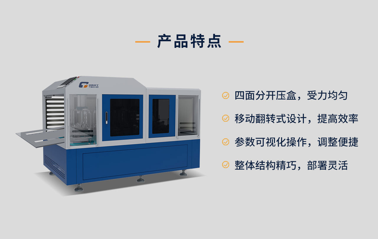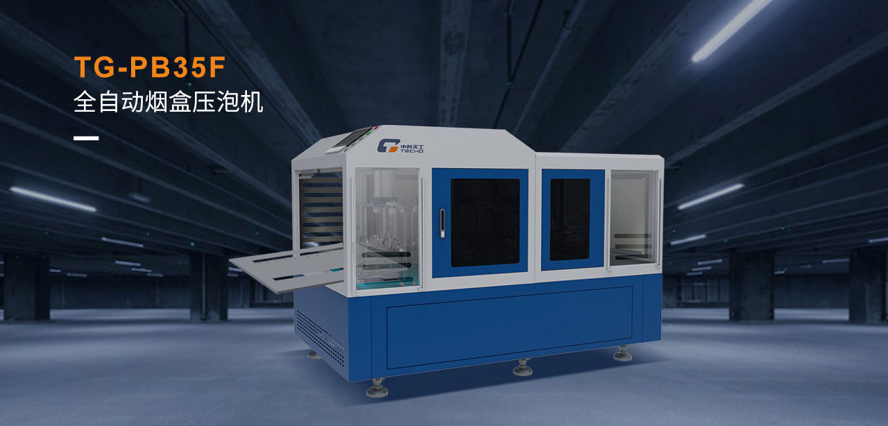 TG-PB35F型全自動煙盒壓泡機(jī),應(yīng)用于精品煙盒的壓泡整型工序。自動歸集、自動上料、自動轉(zhuǎn)向保壓,四面受力均勻,壓泡完成自動出倉,全程無人操作。