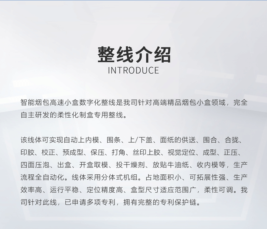 中科天工TG-CA60P智能高速煙包開口盒數(shù)字化整線是我司針對高端煙包領域完全自主研發(fā)的開口盒高速專用整線。