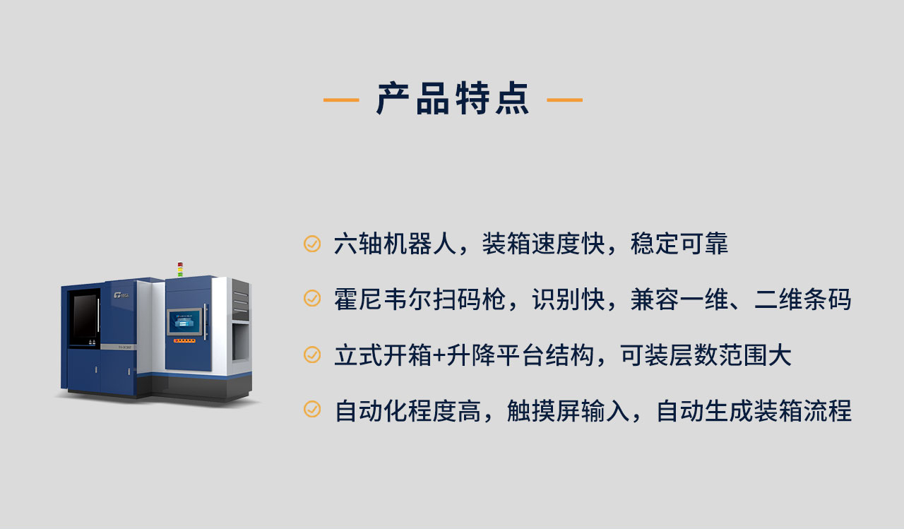 TG-3C50Z全自動(dòng)裝箱機(jī)應(yīng)用于3C電子行業(yè)、化妝品、高端首飾等生產(chǎn)線的即時(shí)在線裝箱,一次性完成開箱、裝箱、計(jì)量、檢測(cè),放隔板、封箱、自動(dòng)打標(biāo),自動(dòng)碼垛(選配)等功能,與前后道工序?qū)崿F(xiàn)柔性連接。